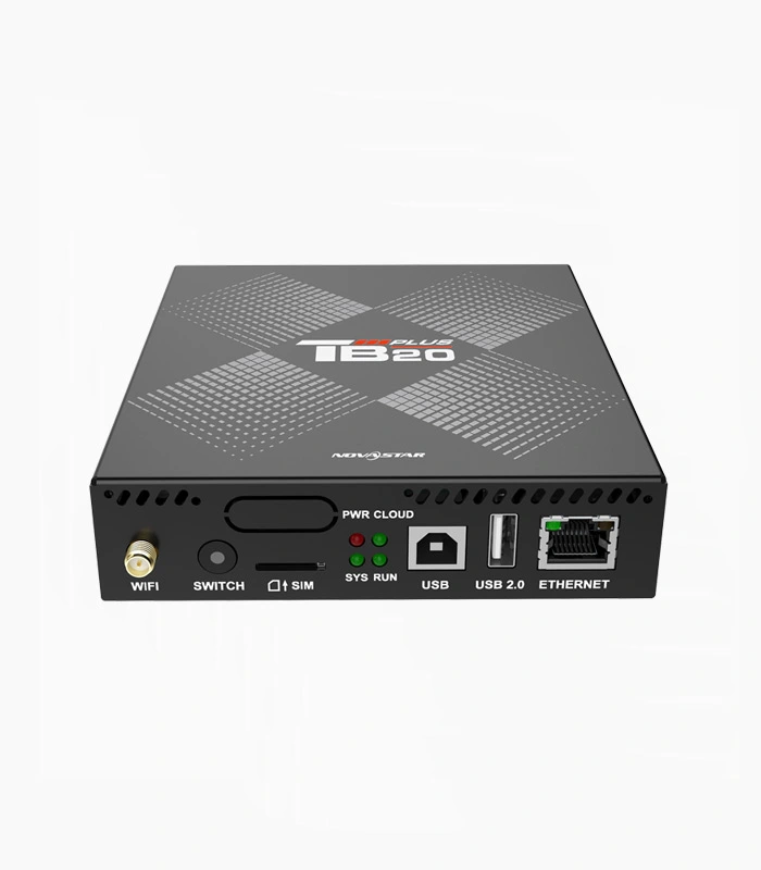 Il NovaStar TB20 Plus rappresenta una soluzione all'avanguardia per la gestione e il controllo di display LED a colori, progettata per soddisfare le esigenze del mercato commerciale e delle applicazioni smart city. Questo dispositivo di nuova generazione integra funzionalità di riproduzione e trasmissione in un unico sistema compatto, offrendo prestazioni superiori e versatilità d'uso.